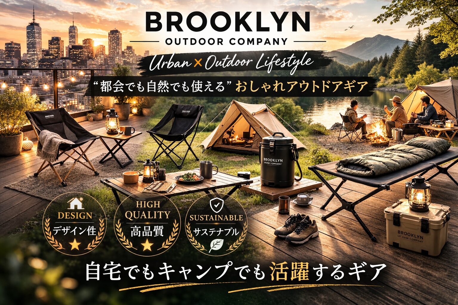 “都市×アウトドア”を融合したブランドであることを表しています。