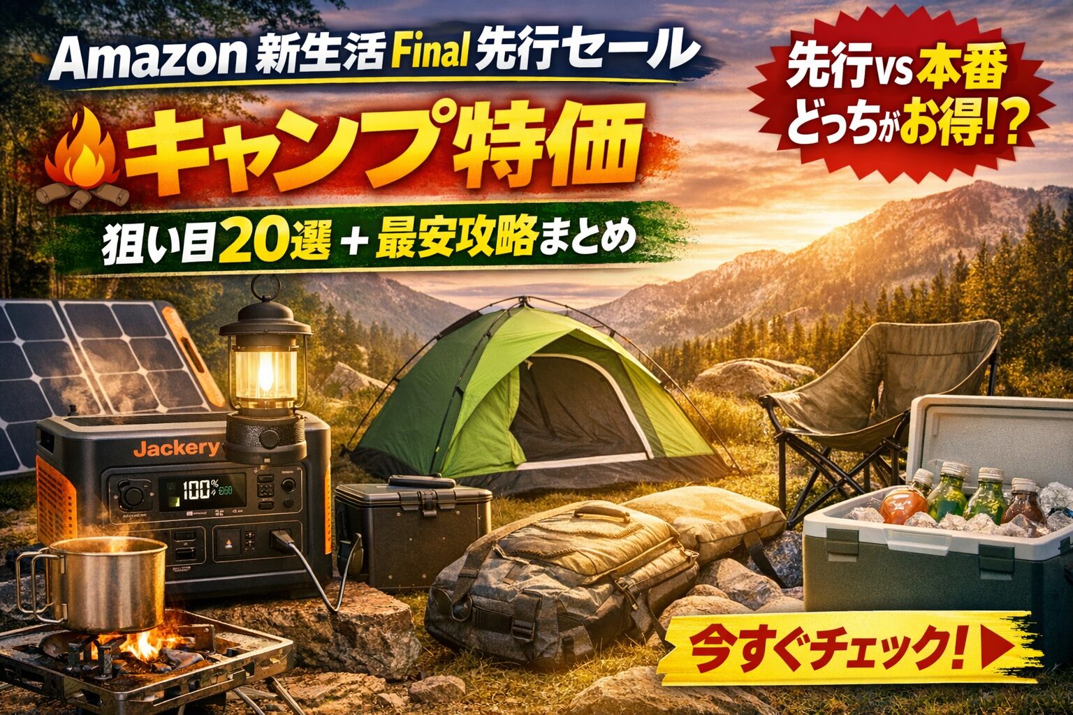 Amazonの新生活Final先行セールは、実は**キャンプ・アウトドア用品がかなり安くなる“隠れ狙い目セール”**です。
